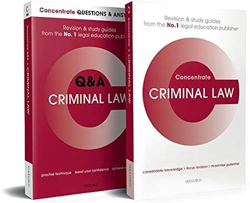 These two revision and study guides have been packaged together to offer you great value when you're looking to get the most out of your revision. Criminal Law Concentrate is the essential revision and study guide for law students looking to consolidate knowledge and achieve the best possible marks. Providing clear, succinct coverage of all the key topics, it enables you to quickly grasp the fundamental principles of this area of law and excel in your exams and coursework. Concentrate Q&A Criminal Law contains model exam questions and answers, with expert advice on recognising what examiners are looking for, structuring a first class answer, avoiding common exam mistakes and making your answer stand out from the crowd.